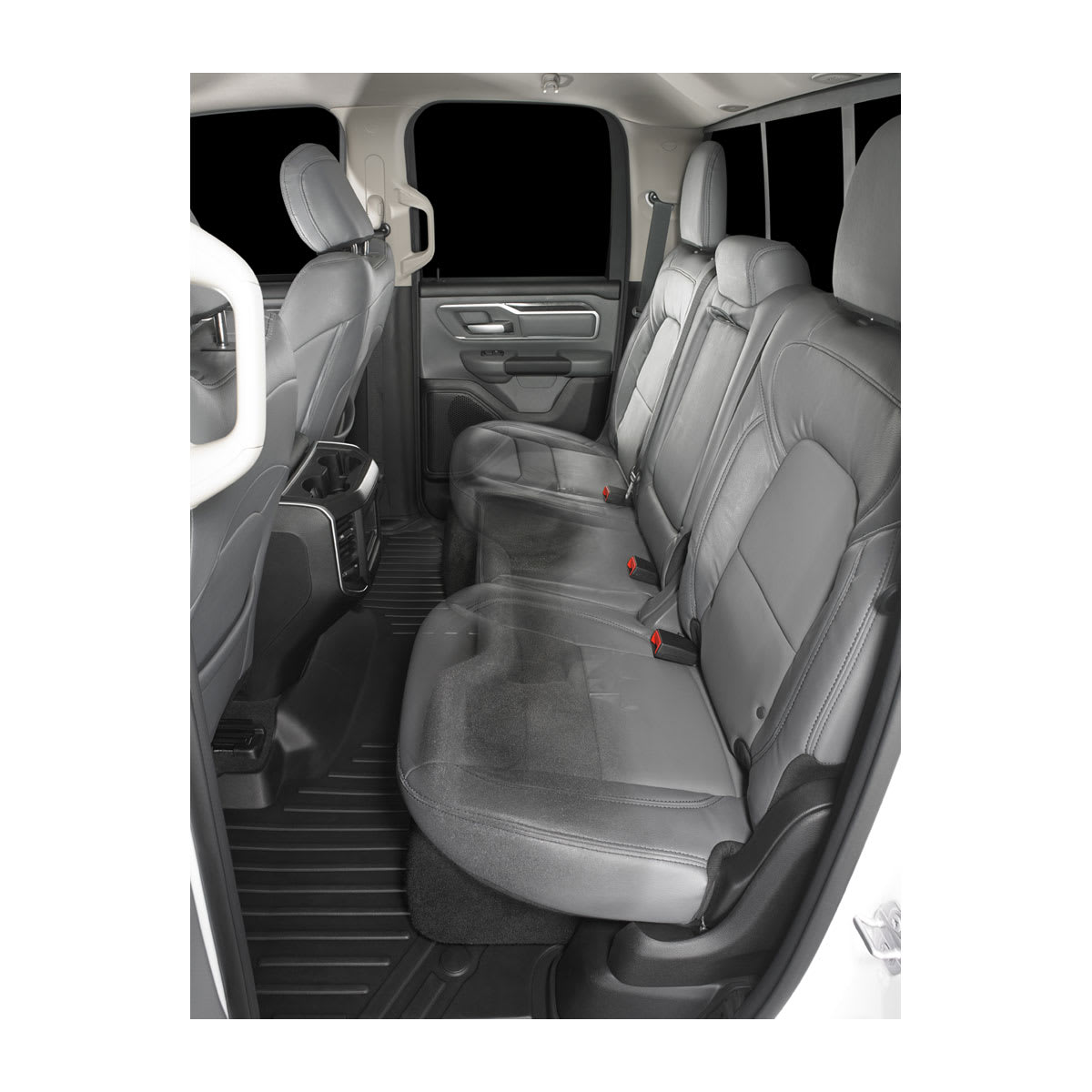 Stealthbox® Enclosed Subwoofer for 2020-Up RAM 1500 Quad Cab houses two 10TW3 thin-line Subwoofers and installs under the rear set.